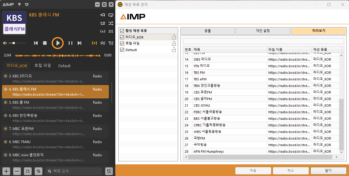 전세계 라디오 정보를 보고 들을수 있는 곳 작성자 정보 천지운행쪽지보내기 회원정보 게시글 검색 댓글 검색쪽지보내기 회원정보 게시글 검색 댓글 검색 작성 작성일 2025.09.28 02:14 컨텐츠 정보 319 조회 12 댓글 목록 본문 https://www.radio-browser.info/ 전세계 라디오 관련 정보를 볼수 있는 곳입니다 관련자료 로그인한 회원만 댓글 등록이 가능합니다. 댓글 12 / 1 페이지 최신순 과거순 최신순 fingcross님의 댓글 fingcross쪽지보내기 회원정보 게시글 검색 댓글 검색쪽지보내기 회원정보 게시글 검색 댓글 검색 작성일 2025.09.30 01:39 감사합니다. 신고 감사합니다. 미친자님의 댓글 미친자쪽지보내기 회원정보 게시글 검색 댓글 검색쪽지보내기 회원정보 게시글 검색 댓글 검색 작성일 2025.09.28 14:25 https://www.radio-browser.info/search?page=1&order=clickcount&reverse=true&hidebroken=true&language=korean 바로가기로 하면 한국 라디오로 되네요 신고 https://www.radio-browser.info/search?page=1&order=clickcount&reverse=true&hidebroken=true&language=korean 바로가기로 하면 한국 라디오로 되네요 프리맨님의 댓글의 댓글 프리맨쪽지보내기 회원정보 게시글 검색 댓글 검색쪽지보내기 회원정보 게시글 검색 댓글 검색 작성일 2025.09.29 17:51 잘 됩네요 감사합니다 신고 잘 됩네요 감사합니다 프리맨님의 댓글 프리맨쪽지보내기 회원정보 게시글 검색 댓글 검색쪽지보내기 회원정보 게시글 검색 댓글 검색 작성일 2025.09.28 13:19 와~ 좋네요 잘 들을께요 근데 똑같이 했는데 검색이 안되네요? 계속 서치.. 신고 와~ 좋네요 잘 들을께요 근데 똑같이 했는데 검색이 안되네요? 계속 서치.. 천지운행님의 댓글의 댓글 천지운행쪽지보내기 회원정보 게시글 검색 댓글 검색쪽지보내기 회원정보 게시글 검색 댓글 검색 작성일 2025.09.28 21:53 메인 화면에 Statistics를 보시면 정상일땐 검색및 라디오 청취 가능 비정상시 검색 및 라디오 청취 불가 검색이나 청취 불가능할때가 간혈적으로 생기더라구요.. 웹상으로 듣기보단 방송국 리스트 다운 받으시는걸 추천드립니다. 신고 메인 화면에 Statistics를 보시면 정상일땐 검색및 라디오 청취 가능 [https://remiz.co.kr/data/editor/2509/cmt_3556386771_gFi73XaV_7ec1725e2c47621663e441e640b4ed6565b56e6c.png] 비정상시 검색 및 라디오 청취 불가 [https://remiz.co.kr/data/editor/2509/cmt_3556386771_TGcM9p4V_27181d9d7f4e1937279c5633f995ef1c732f998f.png] 검색이나 청취 불가능할때가 간혈적으로 생기더라구요.. 웹상으로 듣기보단 방송국 리스트 다운 받으시는걸 추천드립니다. [https://remiz.co.kr/data/editor/2509/cmt_3556386771_rulb9T2M_178bff3b86a1e2cf82034fc9efbd8a35f4551b81.png] kiaz님의 댓글 kiaz쪽지보내기 회원정보 게시글 검색 댓글 검색쪽지보내기 회원정보 게시글 검색 댓글 검색 작성일 2025.09.28 11:57 고맙습니다 신고 고맙습니다 엔씨소프트님의 댓글 엔씨소프트쪽지보내기 회원정보 게시글 검색 댓글 검색쪽지보내기 회원정보 게시글 검색 댓글 검색 작성일 2025.09.28 10:44 라디오는 내 친구죠 ㅎㅎㅎㅎㅎ 신고 라디오는 내 친구죠 ㅎㅎㅎㅎㅎ 사랑스런그녀님의 댓글 사랑스런그녀쪽지보내기 회원정보 게시글 검색 댓글 검색쪽지보내기 회원정보 게시글 검색 댓글 검색 작성일 2025.09.28 09:58 좋은 정보 감사합니다 신고 좋은 정보 감사합니다 소노라마님의 댓글 소노라마쪽지보내기 회원정보 게시글 검색 댓글 검색쪽지보내기 회원정보 게시글 검색 댓글 검색 작성일 2025.09.28 09:57 고맙습니다! 신고 고맙습니다! 벽하님의 댓글 벽하쪽지보내기 회원정보 게시글 검색 댓글 검색쪽지보내기 회원정보 게시글 검색 댓글 검색 작성일 2025.09.28 07:25 좋은 정보 감사합니다. 신고 좋은 정보 감사합니다. 1(current)2(last) 새로운 댓글 확인 목록